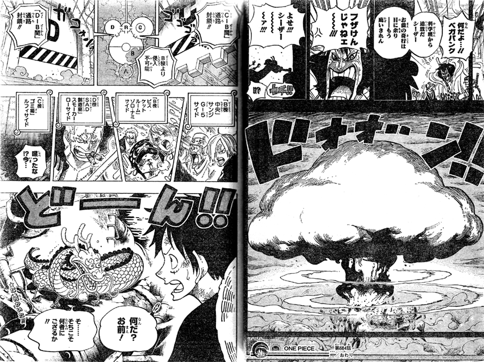 第684話 やめるんだベガパンク スモーカー対ヴェルゴ シーザー実験でキノコ雲 神龍風なモモの助発見か One Piece ワンピース 道場 アニメ 漫画 まにあ道 趣味と遊びを極めるサイト